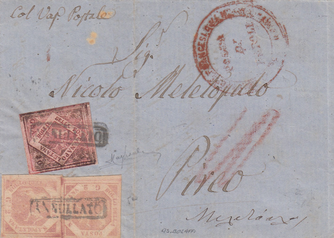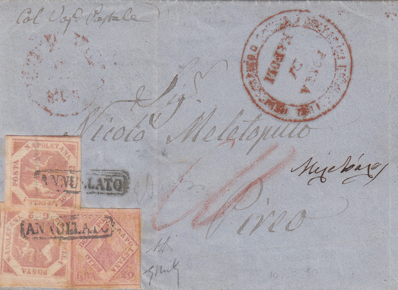 Post von Italien nach Griechenland ist in der frühen Zeit viel seltener als die räumliche Nähe vermuten lässt. Hier ein Brief von 1879 von Neapel nach Piräus, freigemacht mit 2x 2 Grana und 20 Gr. = 24 Gr. und damit einfaches Porto, entwertet mit "ANULLATO" (ca. 3-4 Stück bekannt). |